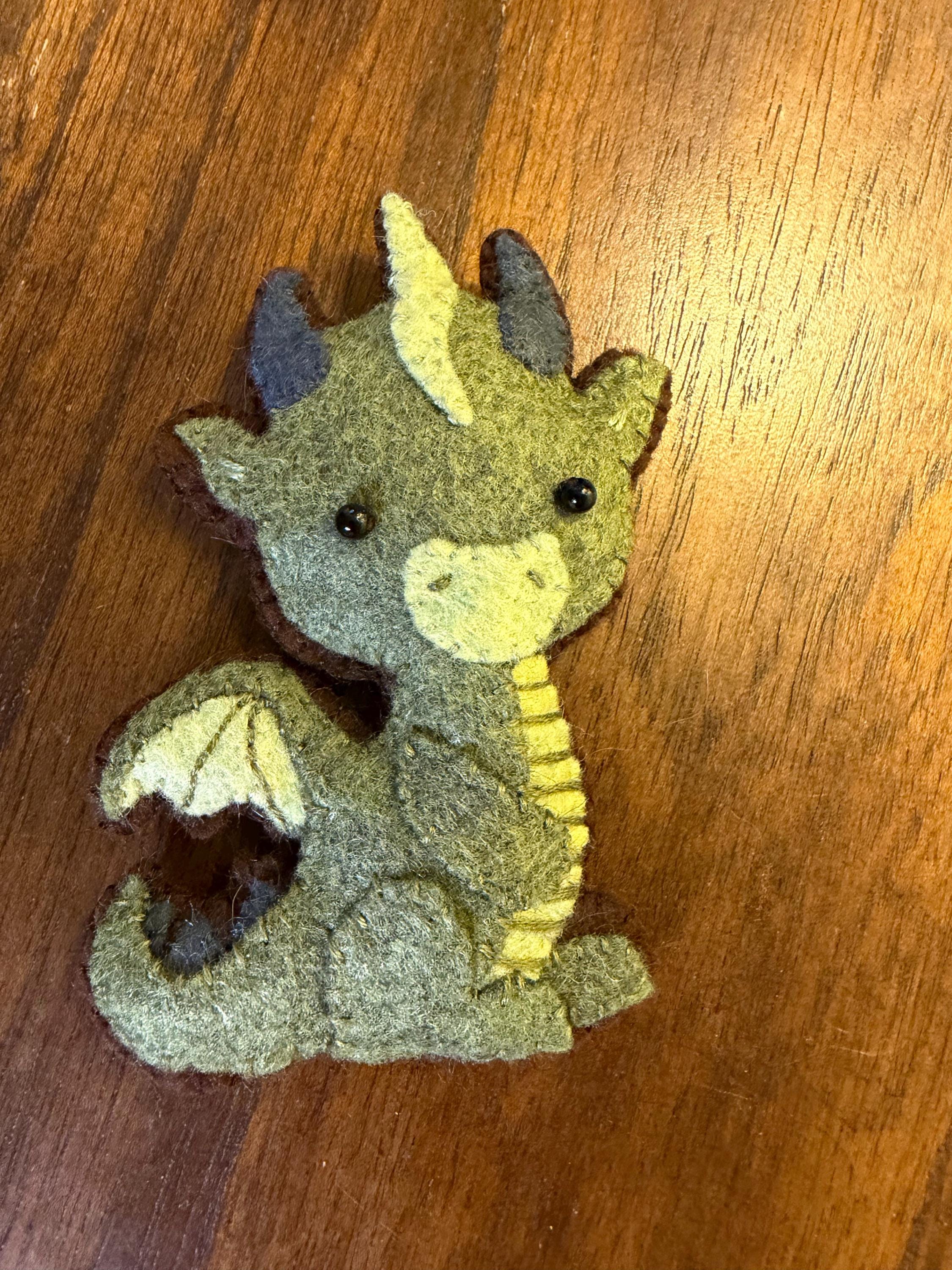 This cute little dragon will help you get in the spooky spirit! Make it for gifts, toys, or to decorate your home for Halloween! Finished ornaments will measure approximately 4.25 inches tall.
